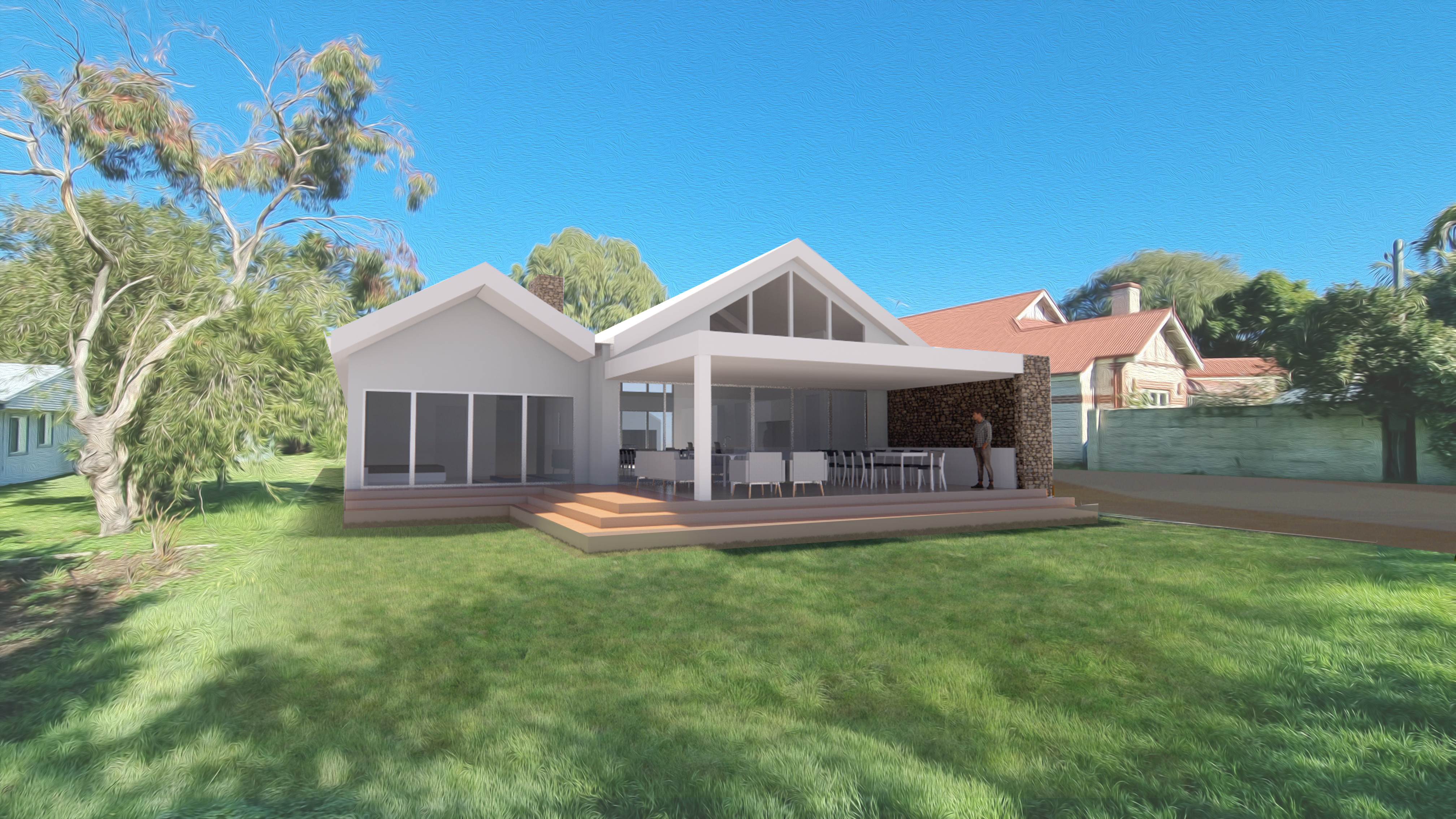 Quindy House Completed April 2025 Concept design for a five bedroom family beach house. Designed for three(+) generations.