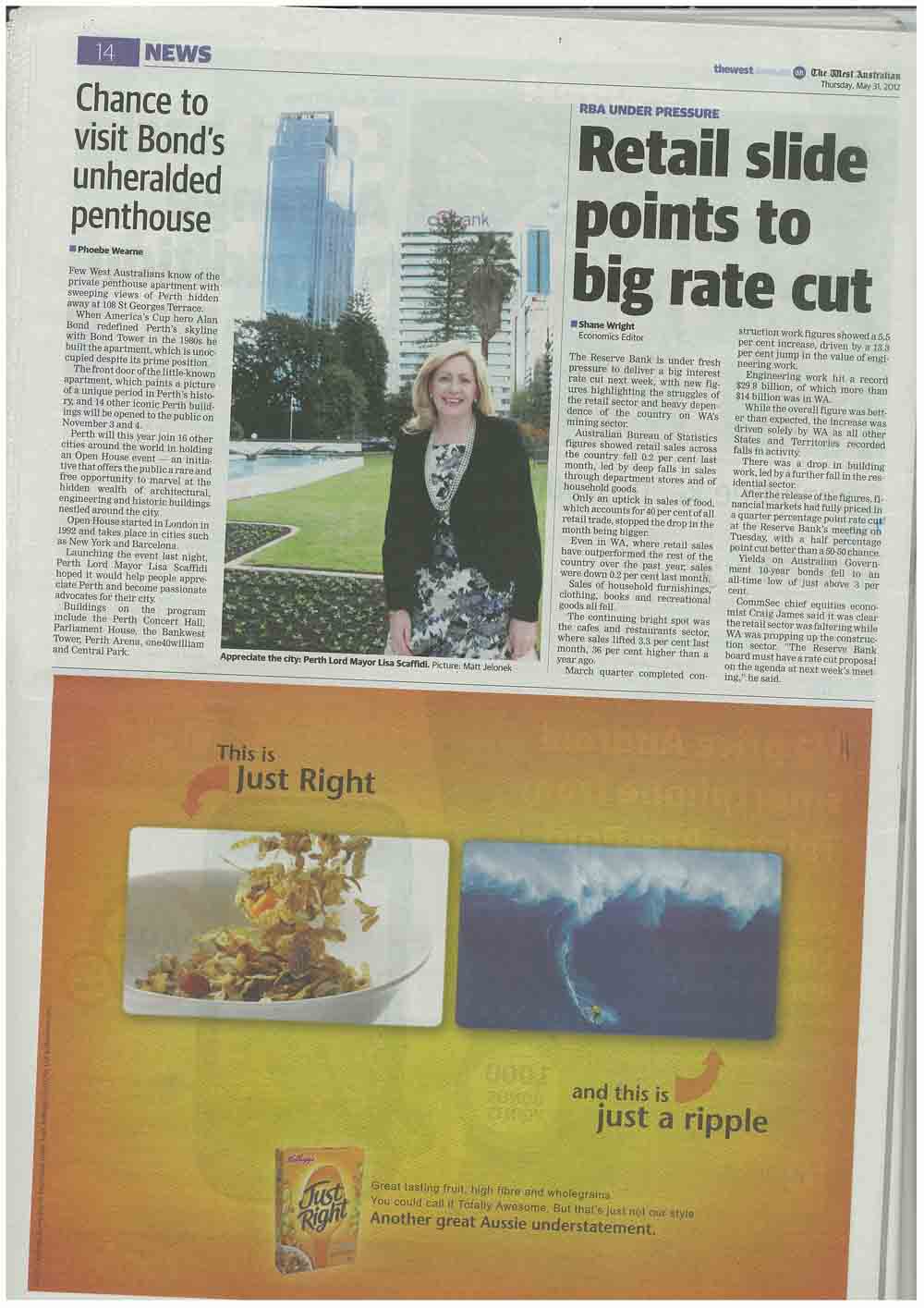 Page 14 of today’s West Australian showcased the first newspaper article on Open House Perth following its media launch event at Council House last night.